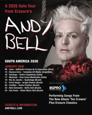 A voz, o carisma singular e a presença magnética de Andy Bell, lendário vocalista do Erasure, chegam ao Brasil em janeiro de 2026 com uma turnê especial e inédita. Reconhecido como um dos maiores nomes do synthpop mundial, Andy desembarca para cinco apresentações exclusivas que celebram sua trajetória solo, seus clássicos eternizados ao lado de Vince Clarke e a nova fase artística marcada pelo sucesso do álbum Ten Crowns, lançado em 2025 e aclamado pela crítica internacional. Em São Paulo, o artista se apresenta no dia 24 de janeiro, na Suhai Music Hall.