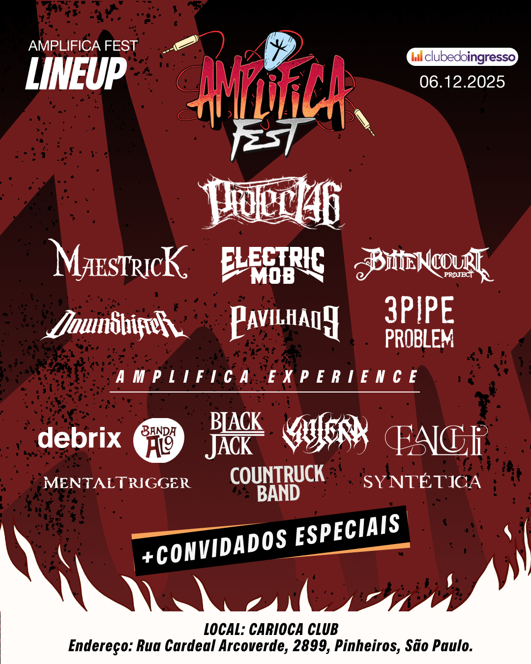 O festival acontece no dia 6 de dezembro, no Carioca Club, em São Paulo, e traz um lineup de peso, reunindo 15 bandas consagradas e novas apostas: Project46, Maestrick, Electric Mob, Bittencourt Project, Downshifter, Pavilhão 9, Black Jack e 3 Pipe Problem, além de Debrix, AL9, Sujera, Jéssica Falchi, Mentaltrigger, Countruck Band e Synthética. Convidados especiais também participarão ao longo do evento.