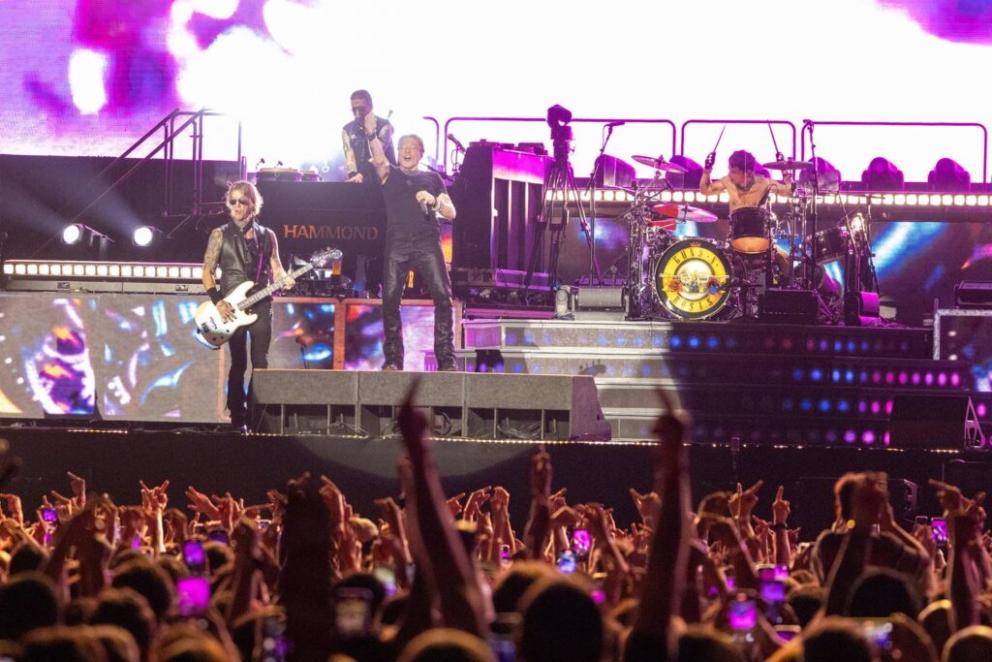 O grupo que se chama Guns N’ Roses hoje tocou no Allianz Parque em 25 de outubro e ainda tem coisas boas aoferecer. Ainda tam estádios e agradm a um público pouco exigente que só quer ouvir hits. Mesmo as pessoas mais novas, curiosas para ver um antigo show de hard rock, se mostram pouco criteriosos em relação a repertório. Não sabem muito sobre a banda e parecem pouco interessados em saber mais.