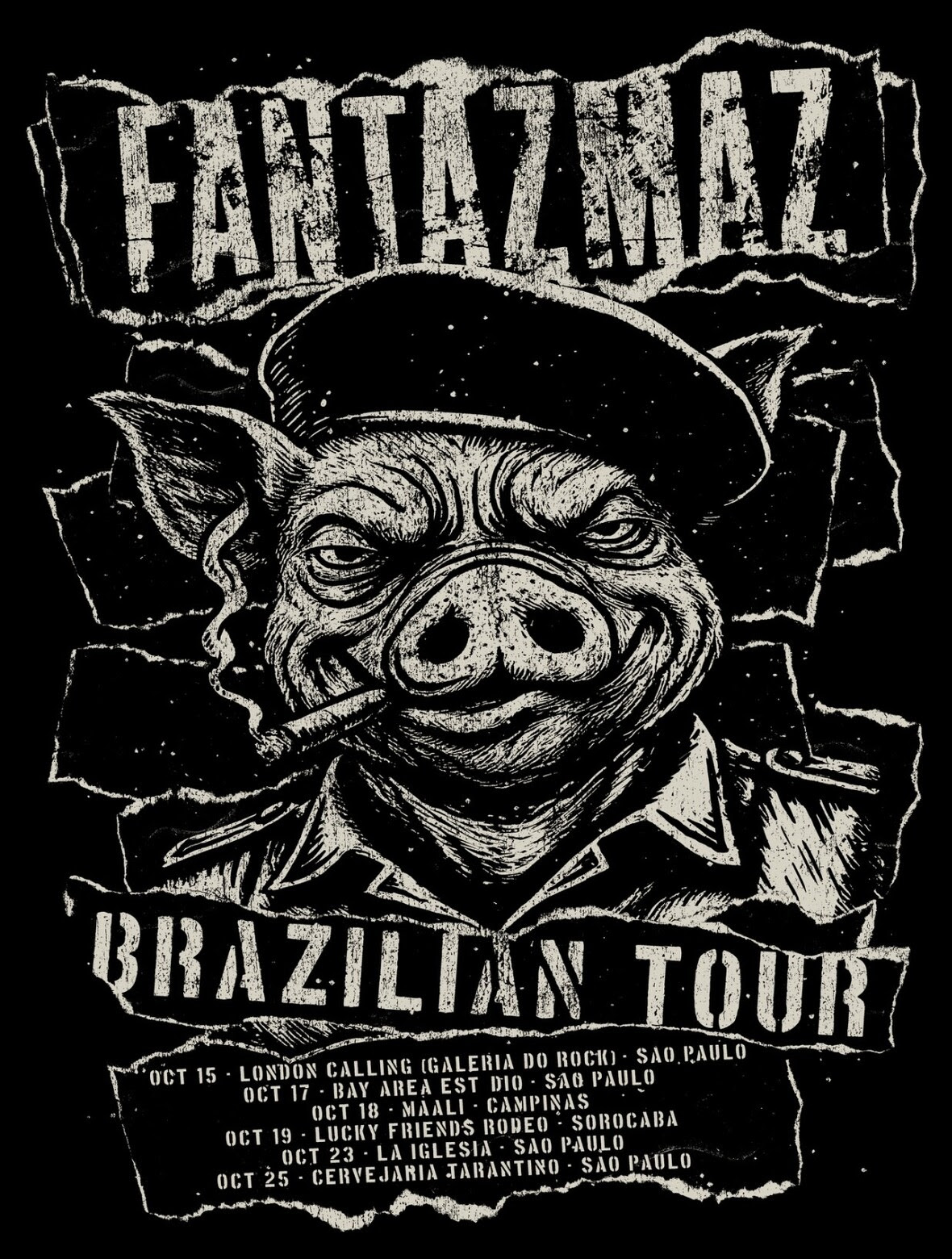 - O Fantazmaz com seu punk rock ácido, feroz e rápido, uma banda de raízes brasileiras atualmente com base em Londres, faz em outubro uma inédita mini-turnê pelo Brasil. Serão cinco shows: em São Paulo, dia 17/10, no Bay Area; também na capital, dia 18/10 no Maali, em Campinas; dia 19/10 no festival Lucky Friends Rodeo, em Sorocaba; de volta a São Paulo, dia 23/10 no La Iglesia; e encerra no dia 25/10 na Cervejaria Tarantino, também em São Paulo. Ingressos à venda: https://linktr.ee/fantazmaz. O primeiro compromisso da Fantazmaz nessa tour é dia 15/10 na loja London Calling, na Galeria do Rock (São Paulo/SP). Será um encontro com os fãs e a banda venderá merchandising neste dia, como o vinil Fantazmaz, o álbum de estreia.Nas plataformas digitais, o álbum saiu via Repetente Records, selo de dois músicos do CPM 22, Badauí e Phil Fargnoli junto ao diretor artístico Rick Lion. A Fantazmaz é Thamila Zenthöfer (vocal), Raf Oliver (guitarra), Chokis Costa (baixo) e Jamie Oliver (bateria).